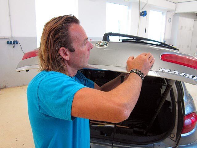 Zuerst wird für die Versicherung ein Hagelschaden Protokoll erstellt. Dabei werden alle Dellen mit einem Stift angezeichnet. Danach wird fein säuberlich gezählt. Jede Delle an jedem Bauteil wird in eine Liste eingetragen. Dann erfolgt die Zerlegung aller notwendigen Teile (Dachhimmel, Motordämmmatte, Türschachtleisten usw.).